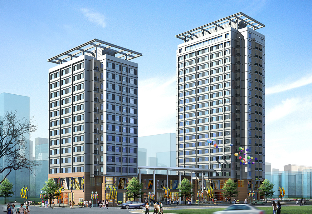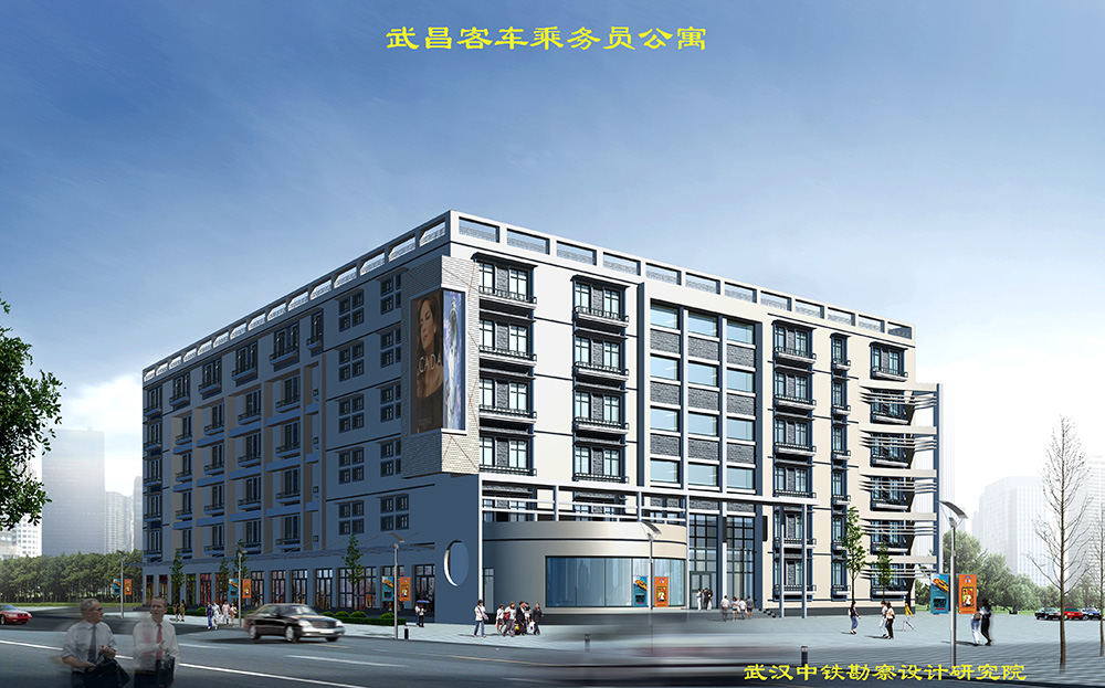 武昌鐵路公寓遷建工程建筑面積26766m2 ,由武昌客車乘務(wù)員公寓、單身職工公寓雙塔樓及商業(yè)網(wǎng)點(diǎn)裙房組成。乘務(wù)員公寓樓占地619.7 m2,總建筑面積8864.9 m2,為地上十三層,地下一層框架剪力墻結(jié)構(gòu),公寓樓共設(shè)雙人間101間,三人間66間,共計(jì)床位數(shù)為400床。單身公寓樓占地763.9 m2,總建筑面積16401.3 m2,為地上二十層,地下一層框架剪力墻結(jié)構(gòu),共設(shè)雙人間404間,共計(jì)床位數(shù)為804床。地下室為設(shè)備用房和備品用房。裙房占地609.85m2,總建筑面積1219.7 m2,為地上二層框架結(jié)構(gòu),一層?xùn)|側(cè)設(shè)有商業(yè)用房,二層為公寓食堂,有便捷的通道通往雙側(cè)公寓主樓。工程投資1億元。