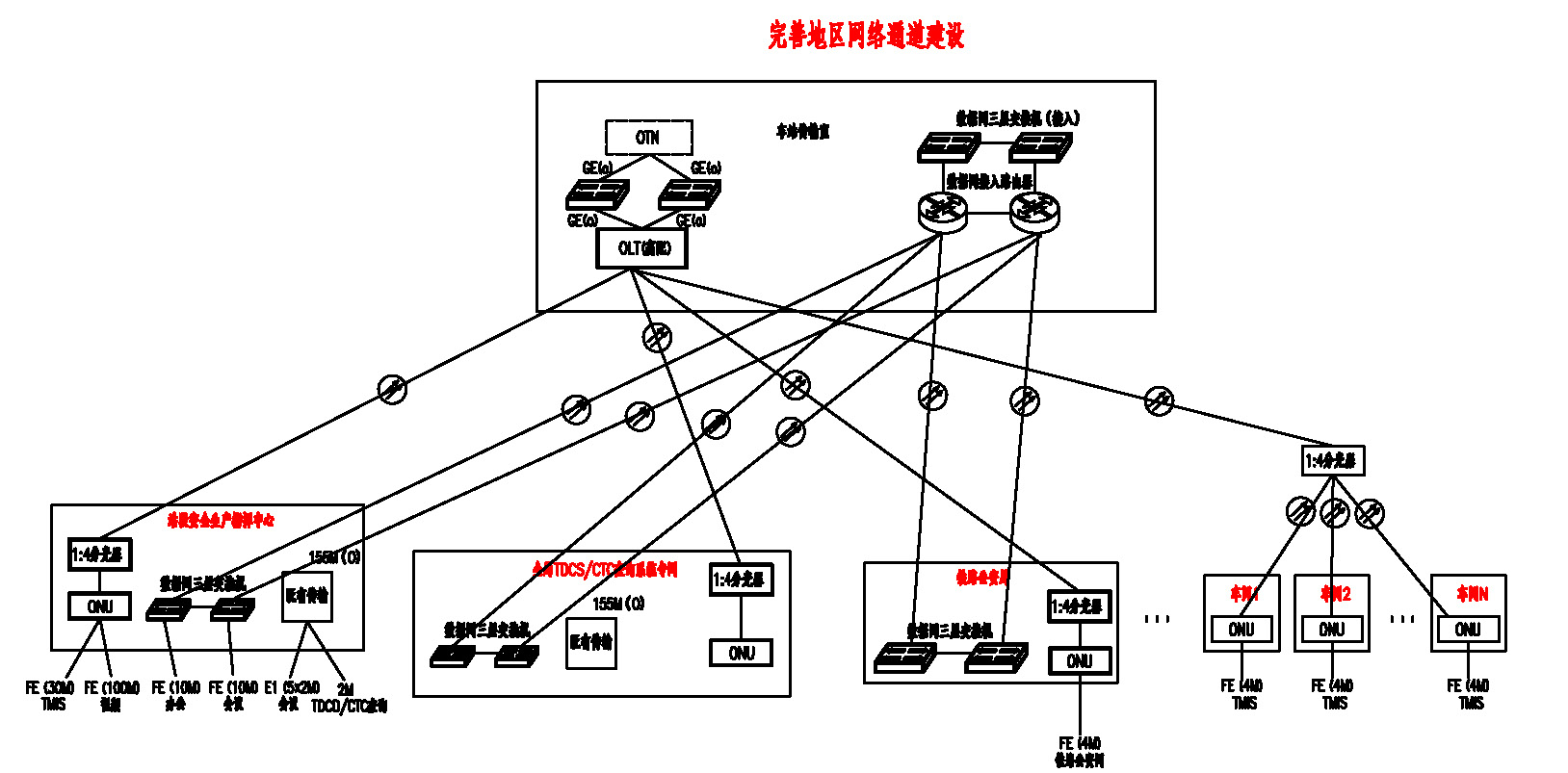 工程采用GPON系統無源光網絡技術,將網絡覆蓋到站段車間,完成了全局43個專業站段以及各專業站段至管轄車間的網絡通道建設,投資約1.6億。其中包含全局管所有站段及車站的IP數據網完善建設、全局TDCS/CTC查詢系統專網建設、全局鐵路公安信息網改造建設及配套約650km的光纜通道建設。在全路領先運用該項新技術。